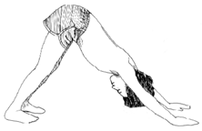 | 16. Downward Dog. The infamous foundation of power yoga - who knows why? But there is a place for this posture if used as one of the series.The only one of this series that you might wish you had a sticky mat for. | ![]() |