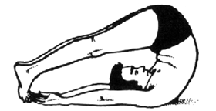 | 5. Forward Bend. A standard classical posture. Use a rope or belt around the bottom of your feet to your hands if you can't reach your ankles. Try to keep your back straight and bend from the hips. | ![]() |